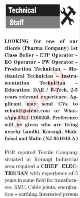 Private Industry latest Classifieds Industrial jobs and others can be applied till 30 November 2023 or as per closing date in newspaper ad. Read complete ad online to know how to apply on latest Private Industry job opportunities. Learn today skills like Pre-production, Electric Repair, Instrumentation and Electricians to apply confidently on these Private Industry jobs.