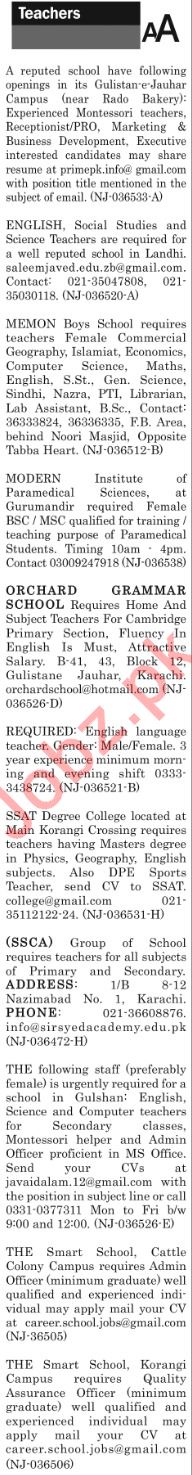 Vacancies in Private School Advertisement December 2018