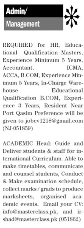 Private Company is looking for candidates for following posts as per job advertisement published in daily The News Newspaper of March 25, 2024 for location Karachi, karachi Sindh Pakistan: