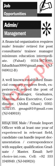 Manager, Admin Manager, Assistant Manager, Accounts Manager, Accountant, Assistant Accounts Manager, Accounts Officer, Finance Manager, Sales Manager, Marketing Manager, Executive Manager, Branch Manager, Secretary, Security Guard, Driver, Office Assistant needs in well reputed companies.