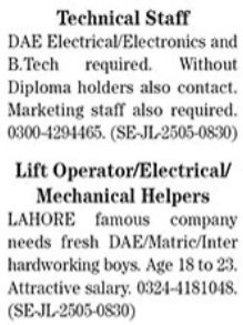 The News Sunday Classified Ads 25 May 2025 For Technical