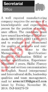 The News Sunday Classified Ads 25 Nov 2018 Secretarial Staff