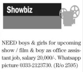 The News Sunday Classified Ads 26 Dec 2021 For Showbiz