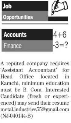 Private Company invites applications for job positions advertised in daily The News dated 28 February 2022 for following vacancies in Karachi, karachi Sindh Pakistan.