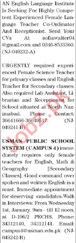 The News Sunday Classified Ads 29 Dec 2019 For Teachers