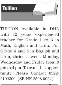 Vacant posts including tutor, teacher and home tutor are announced in Academy Karachi, karachi Sindh Pakistan as per 4 August 2025 advertisement in daily The News Newspaper. Persons with Bachelor and Master etc. education can apply.