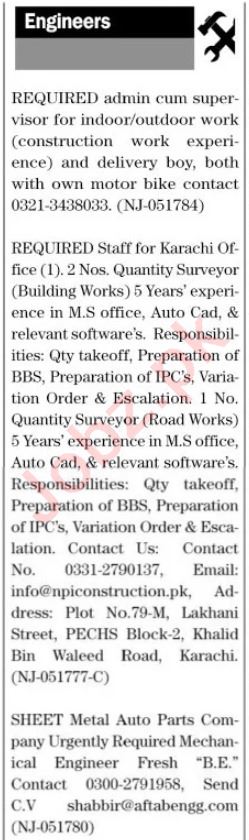 Engineering Company invites applications for job positions advertised in daily The News dated 4 March 2024 for following vacancies in Karachi, karachi Sindh Pakistan.