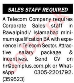 Vacant posts including sales officer and sales staff are announced in PCM Plus Islamabad, rawalpindi Islamabad Pakistan as per 1 May 2023 advertisement in daily The News Newspaper. Educational qualifications required Bachelor and BA etc.