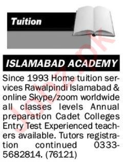 Academy invites applications for job positions advertised in daily The News dated 1 January 2024 for following vacancies in Islamabad, rawalpindi Islamabad Pakistan.
