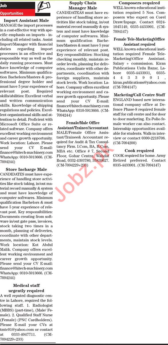 Apply as per details in job advertisement. Login to view further details of how to apply via https://www.jobz.pk online.
