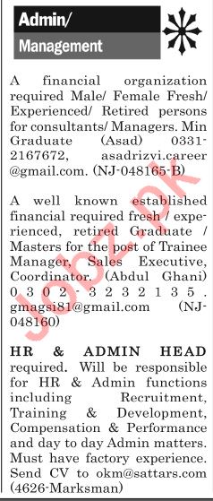 Manager, Admin Manager, Assistant Manager, Accounts Manager, Export Manager, Import Manager, SPA Manager, Garments Manager, Merchandiser, Accountant, Assistant Accounts Manager, Accounts Officer, Finance Manager, Sales Manager, Marketing Manager, Executive Manager, Branch Manager, Secretary, Security Guard, Driver, Office Assistant needs in well known companies.