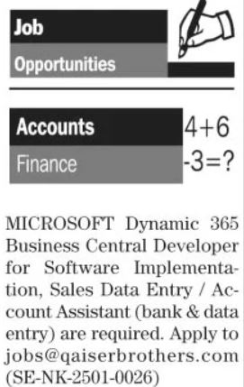 Apply at Al Qaiser Brothers latest Classifieds jobs in Accounting and departments before closing date which is around January 22, 2025 or as per closing date in newspaper ad. Read complete ad online to know how to apply on latest Al Qaiser Brothers job opportunities.