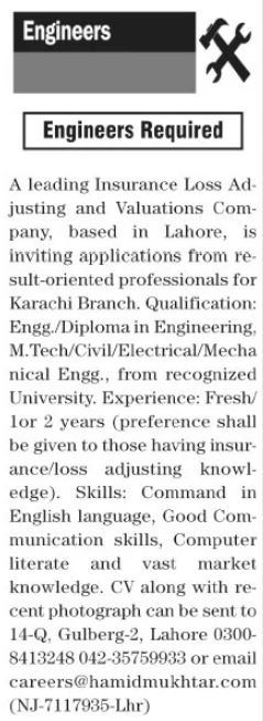 Engineering Company is looking for candidates for following posts as per job advertisement published in daily The News Newspaper of June 6, 2022 for location Karachi, karachi Sindh Pakistan: