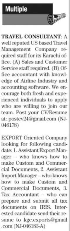 Private Company is looking for candidates for following posts as per job advertisement published in daily The News Newspaper of February 6, 2022 for location Karachi Sindh Pakistan: