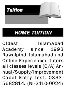 Academy Islamabad, rawalpindi Islamabad Pakistan invites applications from eligible candidates for the post of o level teacher, teacher, home tutor and a level teacher as per advertisement of October 7, 2024 published in daily The News Newspaper. Persons with Master and Bachelor etc. education can apply.