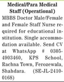 Latest Classifieds jobs in KPS School in Medical and others can be applied till 22 October 2024 or as per closing date in newspaper ad. Read complete ad online to know how to apply on latest KPS School job opportunities.