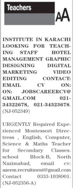 Latest Classifieds jobs in Private School in Teaching and others can be applied till 22 July 2024 or as per closing date in newspaper ad. Read complete ad online to know how to apply on latest Private School job opportunities. Video Editing, Teaching/Lecturing and Graphic Design skills may beneficial for these Private School jobs.