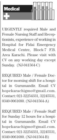 The News Sunday Classified Ads 7 Nov 2021 For Medical Staff