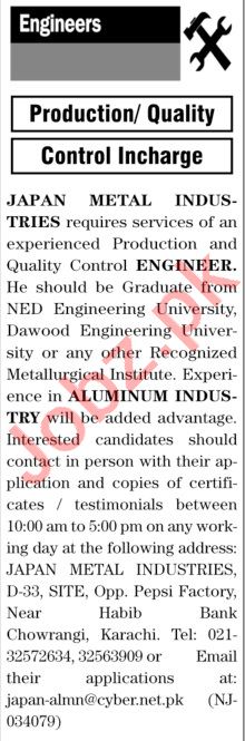 Apply as per details in job advertisement. Login to view further details of how to apply via https://www.jobz.pk online.