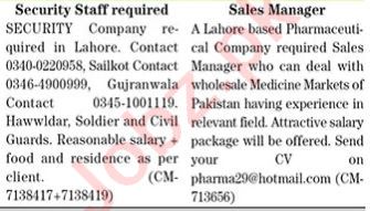 Private Company Lahore, lahore, gujranwala and sialkot Punjab Pakistan invites applications from eligible candidates for the post of security guard, hawaldar, solider, security staff, civil guard and sales manager as per advertisement of October 9, 2023 published in daily The News Newspaper. Candidates with Middle, Intermediate, BA, Bachelor, Matric and B.com etc. educational background will be preferred.