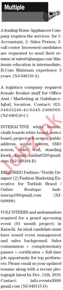 The News Sunday Classified Ads 8th Dec 2019 Multiple Staff