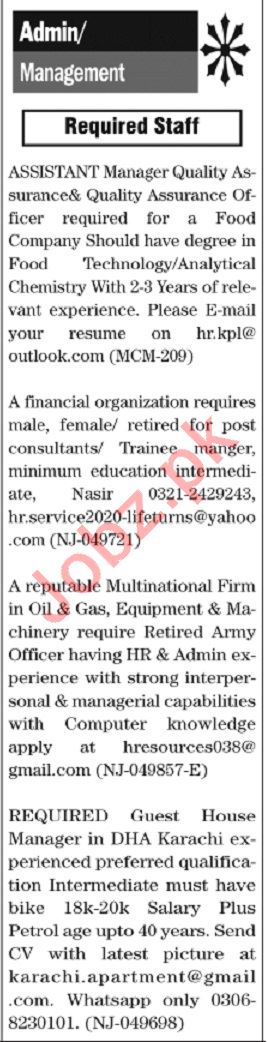 Manager, Admin Manager, Assistant Manager, Accounts Manager, Accountant, Assistant Accounts Manager, Accounts Officer, Finance Manager, Sales Manager, Marketing Manager, Executive Manager, Branch Manager, Secretary, Security Guard, Driver, Office Assistant seeks in well established companies.