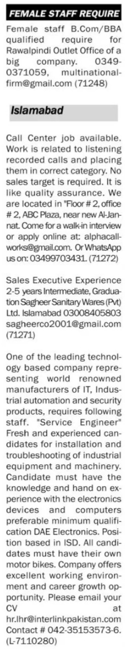 Apply as per details in job advertisement. Login to view further details of how to apply via https://www.jobz.pk online.