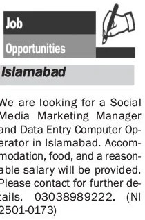 Private Company invites applications for job positions advertised in daily The News dated 27 January 2025 for following vacancies in Islamabad, islamabad Islamabad Pakistan.