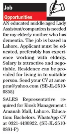 Private Company is looking for candidates for following posts as per job advertisement published in daily The News Newspaper of October 27, 2025 for location Lahore, lahore Punjab Pakistan: