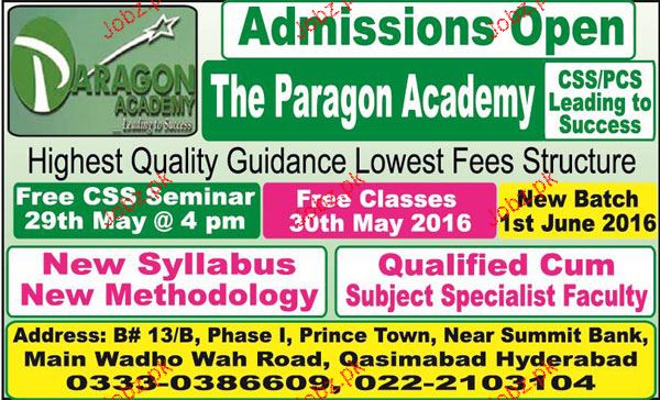 The Paragon Academy Admission in Courses in Hyderabad. Read newspaper ad for exact details.