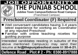 Apply as per details in job advertisement. Login to view further details of how to apply via https://www.jobz.pk online.