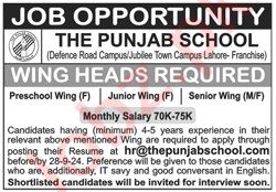 The Punjab School is looking for candidates for following posts as per job advertisement published in daily Jang Newspaper of September 22, 2024 for location Lahore, lahore Punjab Pakistan: