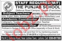 The Punjab School Lahore, Pakistan is seeking for the services from experienced candidates for the posts of Teacher, English Teacher, Chemistry Teacher, Physics Teacher, Biology Teacher, Maths Teacher, Urdu Teacher. keep up the good work, upwork is in hardworking.