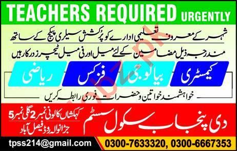 The Punjab School System is looking for highly qualified and experienced candidates for the posts of Chemistry Teacher, Biology Teacher, Physics Teacher, Maths Teacher in Faisalabad. Interested candidates who are looking for Rozee can contact on given details for more information.