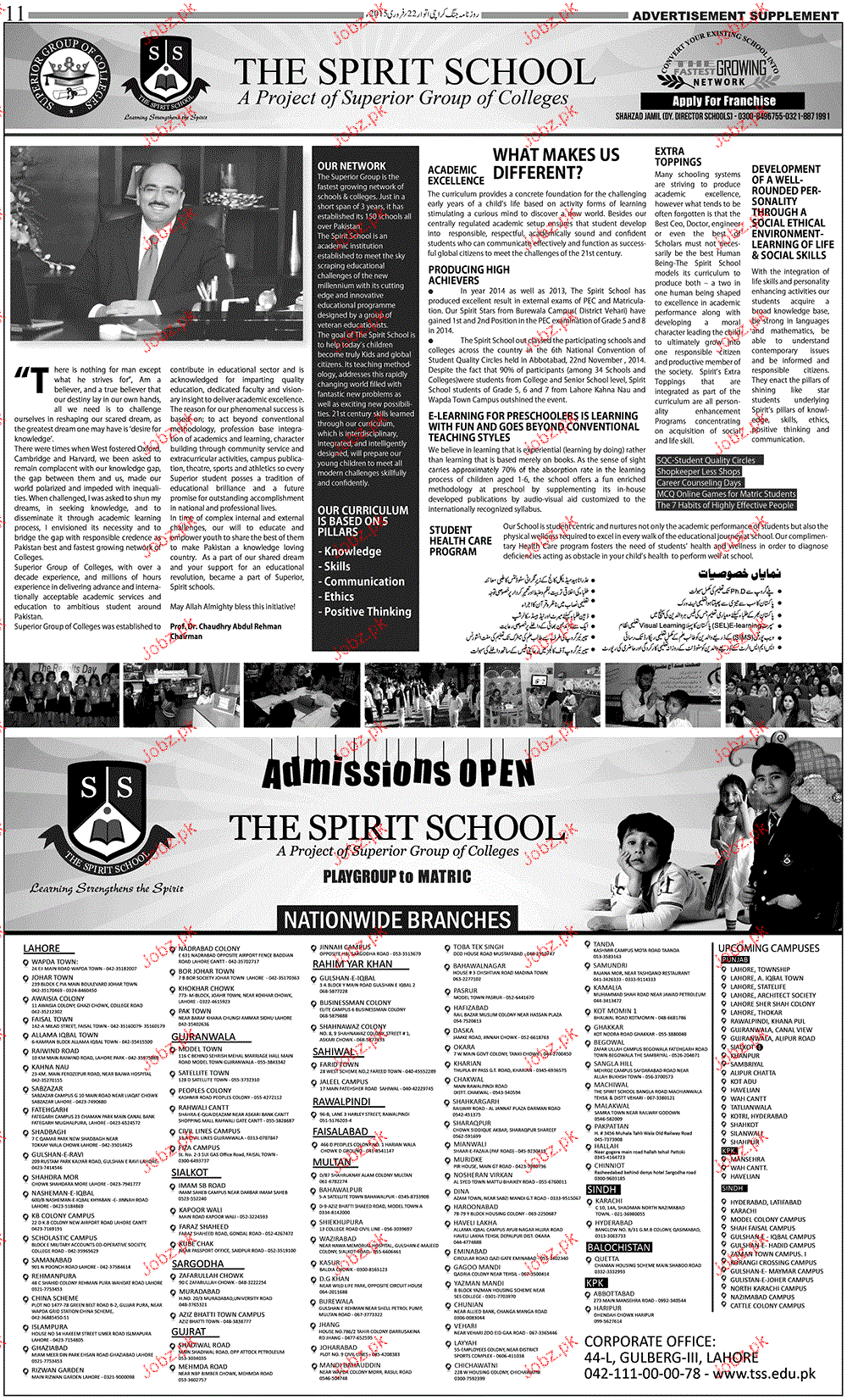 The Spirit School Admission in School in Lahore. Read newspaper ad for exact details.