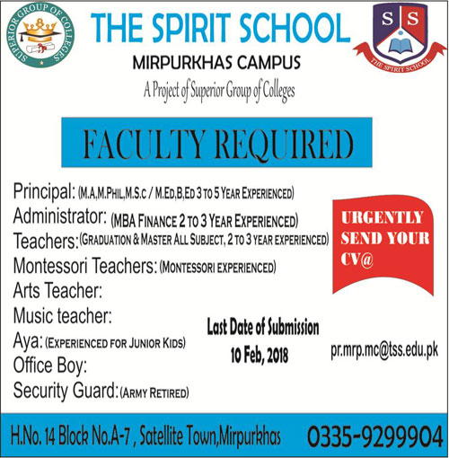 The Spirit School Faculty Required For Mirpurkhas Campus