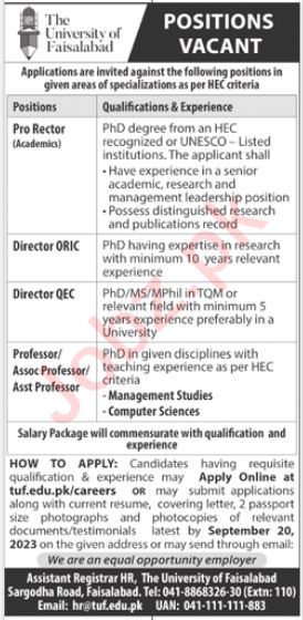 Vacancies in The University of Faisalabad Advertisement September 2023
