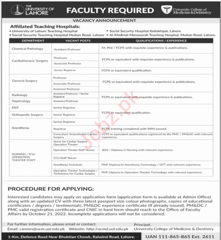 Vacancies in The University of Lahore Advertisement October 2022
