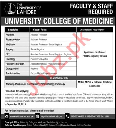 Vacancies in The University of Lahore Advertisement September 2019