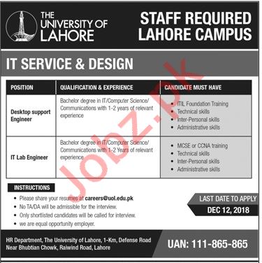 The University Of Lahore UOL Jobs 2019 For Engineers