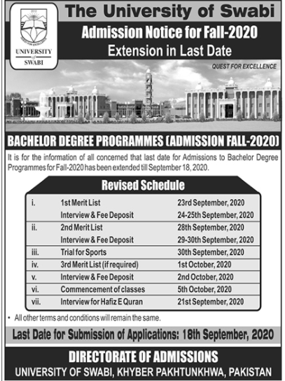 The University Of Swabi is a public sector university situated in Anbar, Swabi in Khyber Pakhtunkhwa has announced admissions in Bachelor Degree Programmes. Read newspaper ad for exact details.