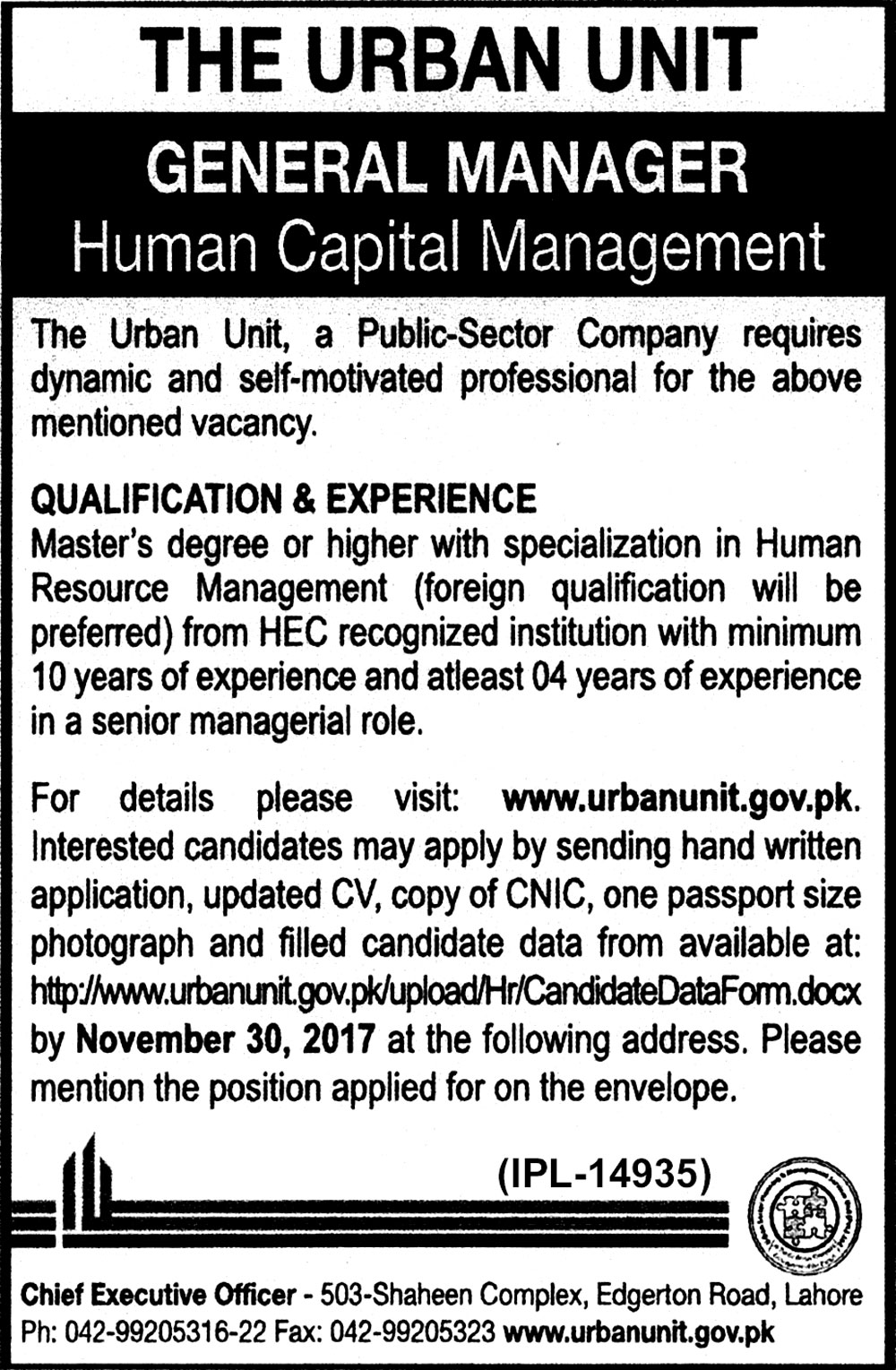 Latest The Urban Unit Management Posts Lahore 2025