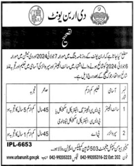 The Urban Unit Lahore, lahore Punjab Pakistan invites applications from eligible candidates for the post of site engineer and supervisor as per advertisement of July 17, 2024 published in daily Jang Newspaper. Candidates with Bachelor, B.E and BA etc. educational background will be preferred.