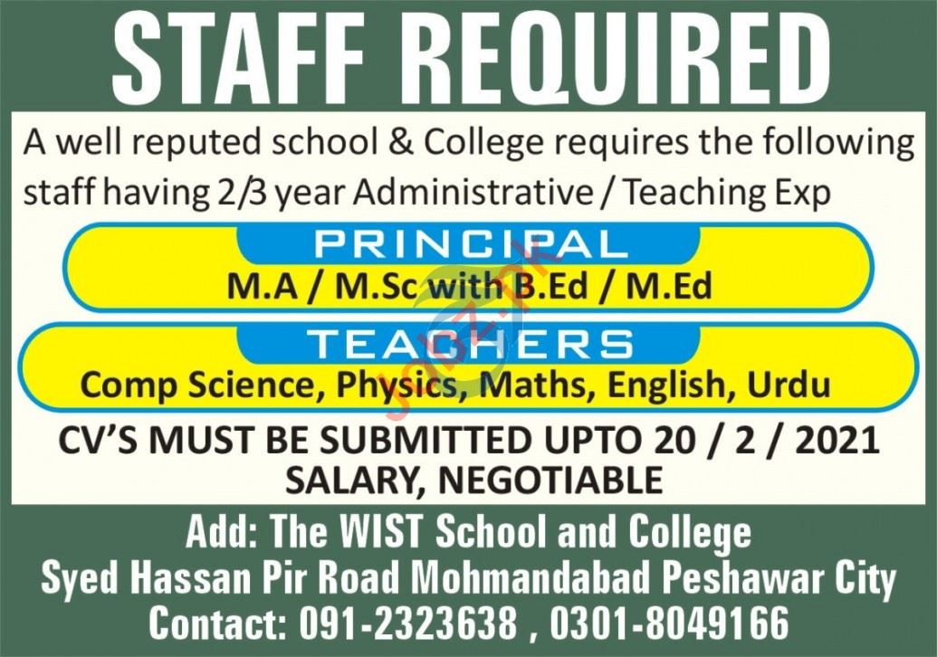 The WIST School & College Peshawar Jobs 2021 for Teachers