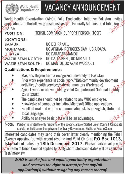 Latest World Health Organization WHO Admin Clerical Posts Orakzai Agency 2025