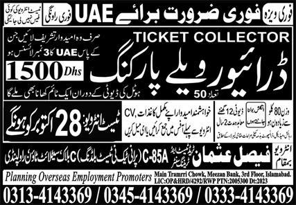 Ticket Collector & Driver Valet Parking Jobs 2023 in UAE