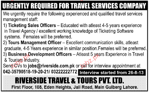 Ticketing Sales Officers, Tours Management Officer Wanted