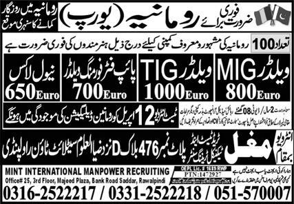 Mughal Trade Test & Technical Training Center invites applications for job positions advertised in daily Express dated 5 April 2023 for following vacancies in Romania, romania Romania.