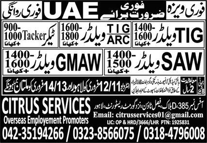 Citrus Services Overseas Employment Promoters invites applications for job positions advertised in daily Express dated 10 February 2024 for following vacancies in UAE, uae UAE.