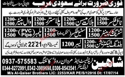 Tile Fixers, Block Mason, Wall Painters, Steel Fixers Wanted